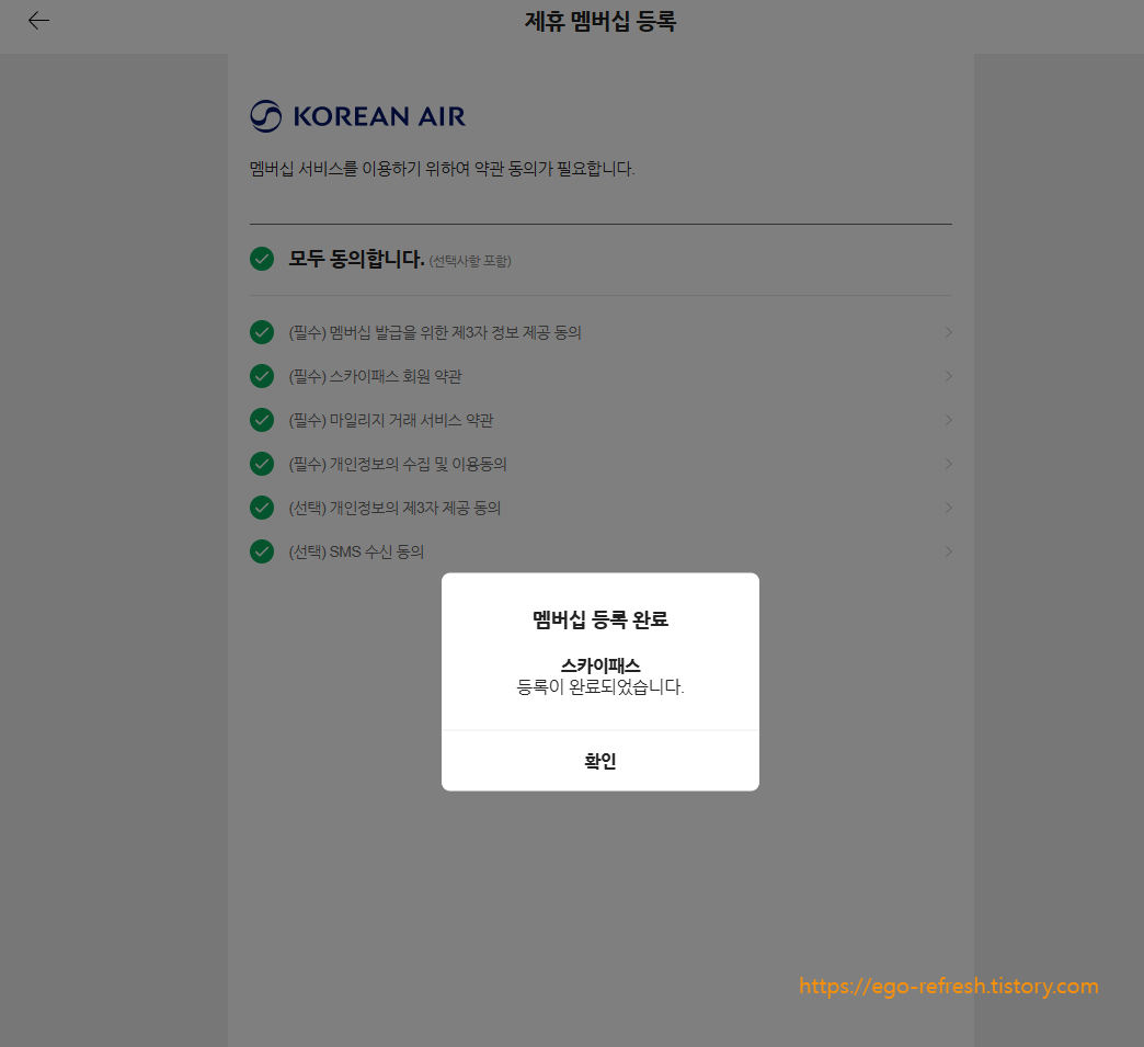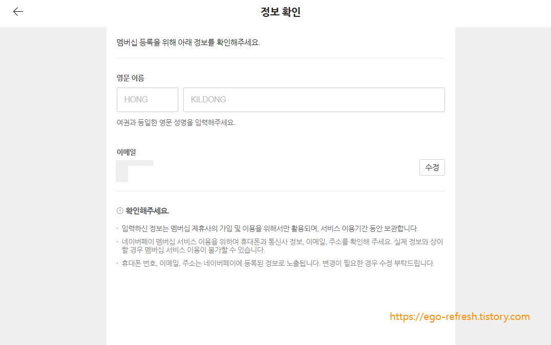 3. 이후는 pc 버전(3-5)과 동일(멤버십 등록 및 동의하기)