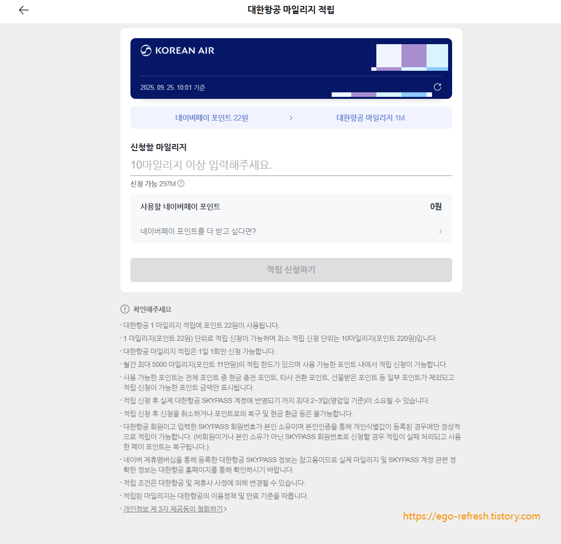 네이버 페이 포인트 대한항공 마일리지로 전환하는 방법