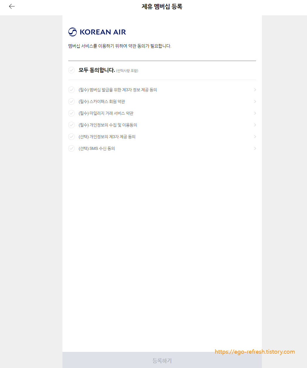 3. 이후는 pc 버전(3-5)과 동일(멤버십 등록 및 동의하기)